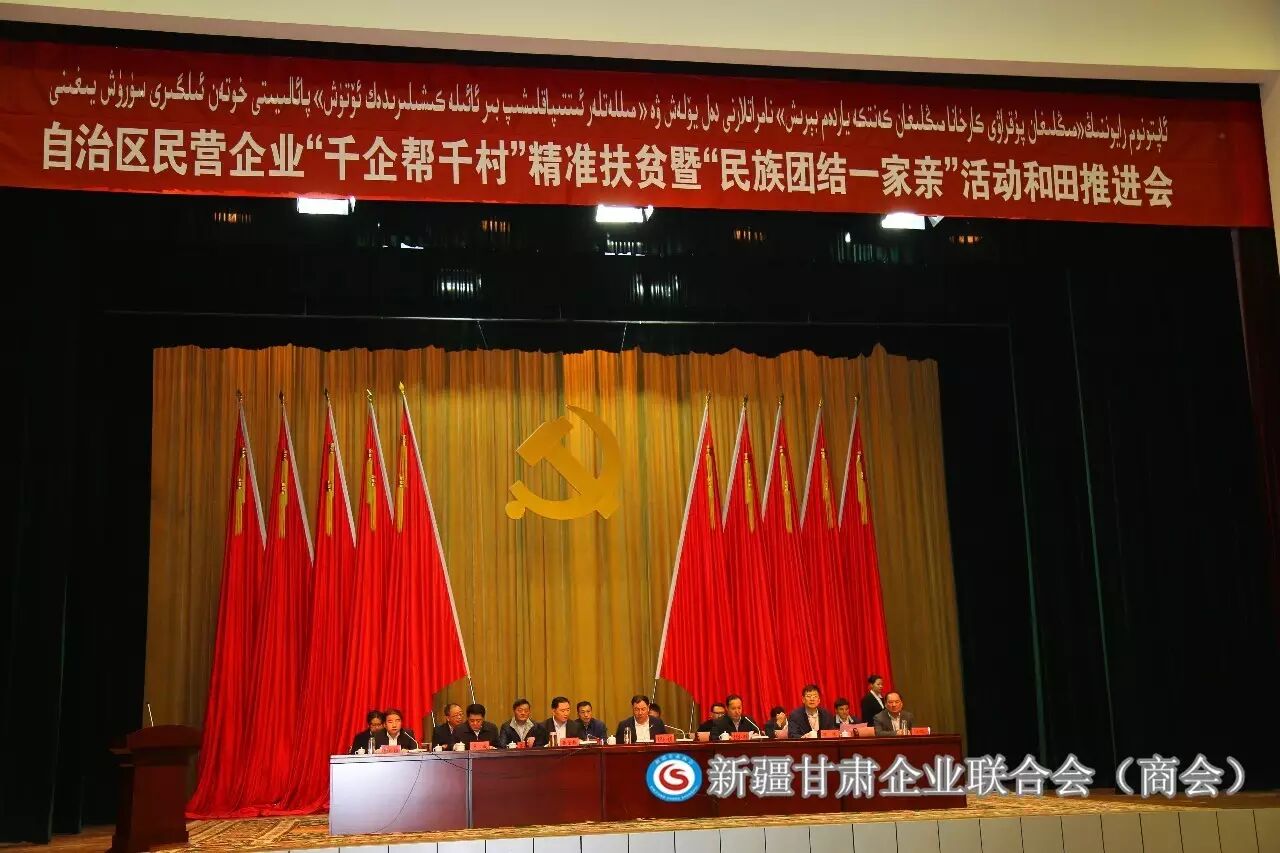自治区民营企业“千企帮千村”精准扶贫暨“民族团结一家亲”活动和田推进会现场