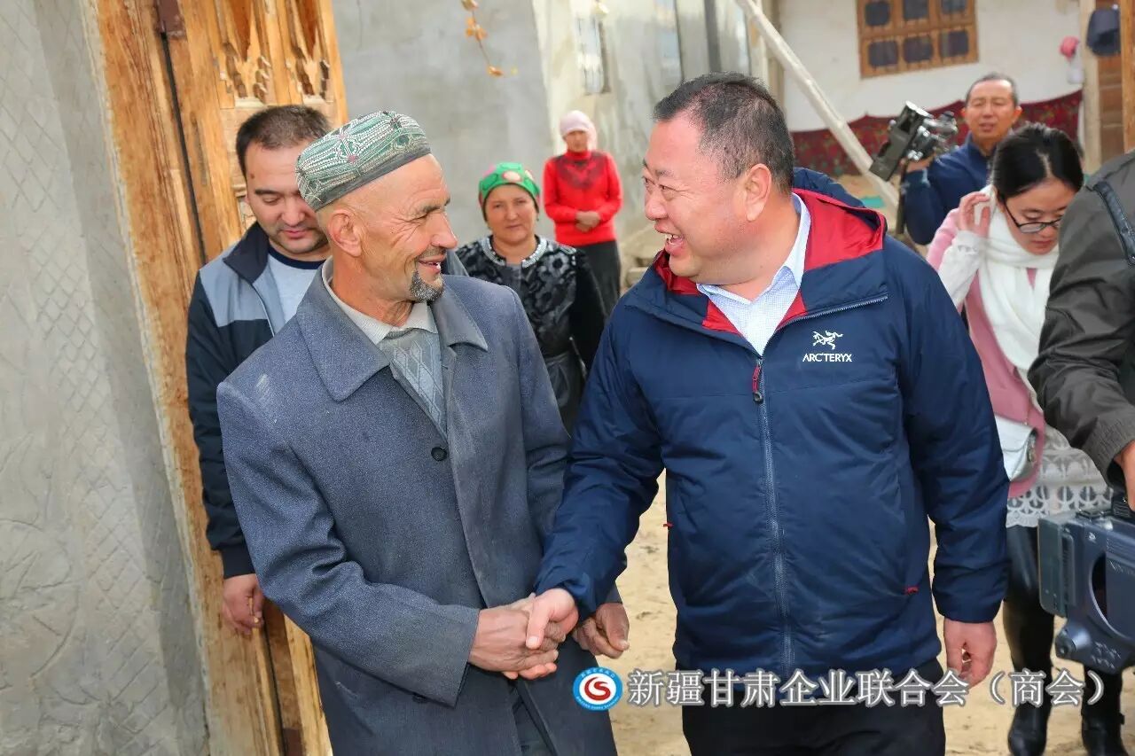 11月15日上午,新疆甘肃商会会长、新疆大湾房产集团总经理李利涛先生同商会部分企业家一起,带着大米、面粉、清油等慰问品来到了商会对口帮扶村吉格代艾日克村进行走访慰问,并同该村贫困户买买提·买吐逊和居买尼沙罕结对认了亲。